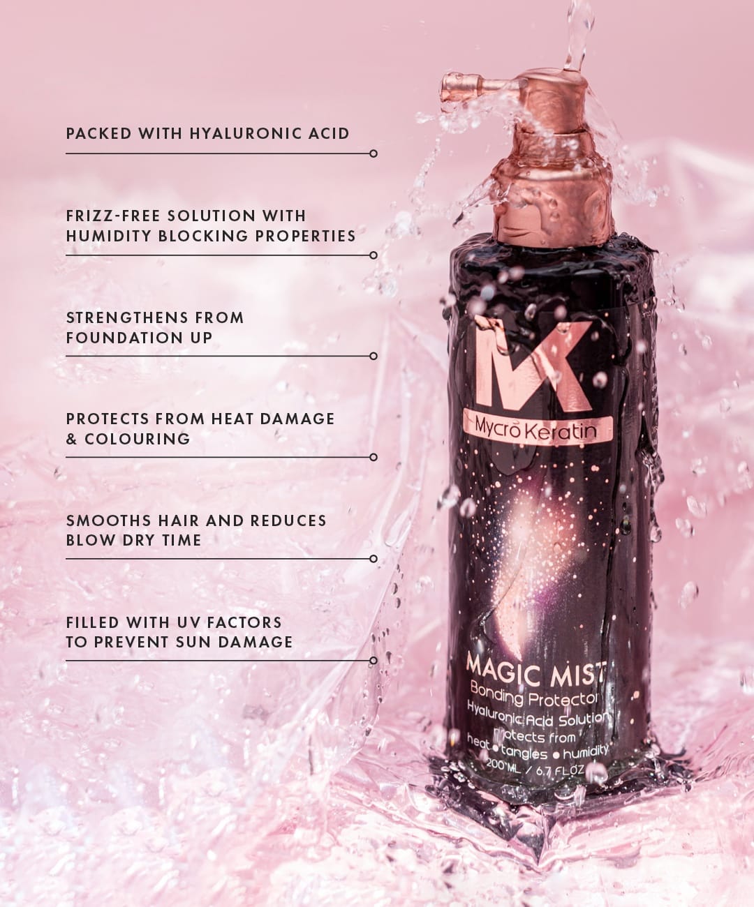 Boosted with Hyaluronic Acid, Magic Mist is an intensive hair protector that shields hair from heat, humidity & tangles – fortifying hair fibres and restoring a healthy glow. Magic Mist gives you maximum hydration whilst reducing friction and breakage, making styling a breeze and helping you flaunt the healthiest version of your hair.